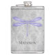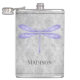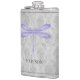 Aproveite as suas bebidas alcoólicas favoritas a qualquer momento com um frasco de dragonfly púrpura Damask Vinyl Wrapped. O design de fenda apresenta uma libélula colorida contra uma cor damasco de cinza elegante. Itens de presentes adicionais disponíveis com este design também.
