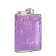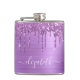 Balão elegante e girado personalizado com brilho púrpura escorrendo sobre um fundo metálico esfregado de ouro rosa. Personalize com seu nome em um roteiro branco de tendências com baloiços.