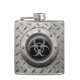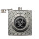 Este características que gráficas originais o bio símbolo do perigo dentro de um quadro circular cercou por uma placa de aço. As texturas e as cores metálicas dão ao teste padrão uma sensação industrial forte. Os grandes rebites aparecem no quadro de aço inoxidável que é criado para ter um efeito 3 dimensional. Os riscos e as marcas do scuff cobrem este envelhecidas e o sinal vestido do biohazrd que é usado frequentemente simbolizar um apocalipse do zombi