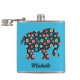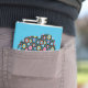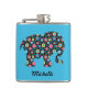Bonitos presentes, acessórios e decoração do estilo da arte popular, com silhueta elefante com padrão florescente sobre fundo azul claro.