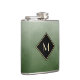 Mostre a sua classe interna com este frasco monograma elegante e na moda verde e preto. Este simples e sofisticado design de gradiente escovado com uma estrutura moderna em forma de diamante com uma borda dourada pode ser personalizado adicionando seu primeiro monograma. Imagem plana, NÃO metálica.