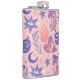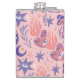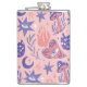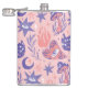 Um padrão de imagens temáticas de bruxas em rosa e roxo