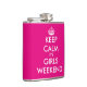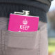 Engraçado manter calmo as garotas. O rosa personalizado mantém um frasco calmo para as mulheres. Faça a sua própria paródia engraçada de manter calma para as meninas noites fora, festa de solteira, Aniversário etc. Mantenha a calma e carregar na mancha. Um aniversário humorístico ou ideia de presente de casamento para noivas e damas de honra. Vintage keepcalmandcarryon com pequena coroa.
