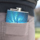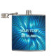Uma imagem fractal monocromática semelhante a uma intrincada gravação de uma estrela multiarmada em metal azul ou plástico. Personalize adicionando seu próprio texto.