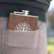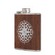 Uma moderna aplicação no estilo náutico prateado cromado em uma decoração com impressão de madeira de mogno molhado para um presente de um frasco personalizado de luxo.