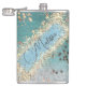 Uma relíquia brilhante de estrelas douradas chovendo em um pano de fundo azul teal ombre para talhar extra. Pode ser personalizado com um nome em um cartaz de mortalha para torná-lo único. Víbulas de brilho cerâmico.