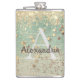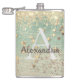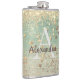 Estrelas de ouro brilhantes num pano verde-do-mar sombrio, com brilho dourado no topo para um brilho extra. Vibrações quentes. Pode ser personalizado com uma letra e um nome para torná-la exclusivamente sua.