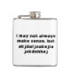 Começou como um tweet inofensivo. Ele se espalhou em uma atualização de status não-sensorial. Agora - é um FLASK! Leituras: 'Eu posso nem sempre fazer sentido, mas akjdafjsakejiajskdnhhej' design original de Sunny. Copyright 2014