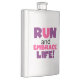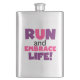 Se você gosta de correr, correr 5Ks, 10Ks, meia maratona, ou maratonas, você vai adorar este design de texto colorido em roxo e rosa que lê Run and Embrace Life! Corra e Abraça camisetas, canecas, bolsas, cartões, autocolantes, correntes-chave, mousépias, capas de iphone, ímãs e muito mais!