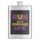 Se você gosta de correr, correr 5Ks, 10Ks, meia maratona, ou maratonas, você vai adorar este design de texto colorido em roxo e amarelo que lê Run and Embrace Life! Corra e Abraça Camisas de Vida, capuzes, ímãs, botões, cartões, adesivos, correntes-chave e muitos outros itens para corredores que adoram um design brilhante e colorido!