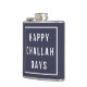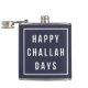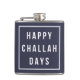 Deseje aos seus amigos e entes queridos "Dias Felizes de Challah" e tome um gole da sua libação favorita. Um frasco de férias engraçado apresenta um texto branco moderno e minimalista sobre um fundo azul escuro da meia-noite.