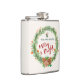 Um frasco de NatalT com uma coroa aquosa. Agulhas de pinheiros verdes, cones de pinho e bagas decorativas constituem esta coroa festiva. Dentro a coroa são alguns ornamentos decorativos e as palavras" podem ser Feliz e Brilho. Escrito em uma fonte vermelha da moda.