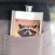 Engraçado Raccoon vestindo uma camisa havaiana em uma bela praia.