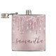 Um fundo rosa dourado com gotejamento rosa, visual de tinta pingando. Personalize e adicione um nome. O nome é escrito em rosa dourado escuro com um estilo de letra manuscrita moderna, grande e negrito, com floreios. Para manter os floreios, exclua apenas o nome da amostra, deixando os espaços ou emojis antes e depois do nome.
