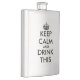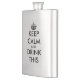 Fique calmo e beba este frasco de aço engraçado. Balão de quadril personalizado com citação engraçada. Legal ideia de presente de aniversário para homens, pais, marido etc. Personalizável em qualquer cor. Grandes e pequenos tamanhos. Crie sua própria versão de meme opcionalmente. Garrafas de licor personalizadas.