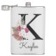 Frasco inicial rosa Boho monogramado, presente perfeito para uma despedida de solteira ou outra celebração divertida e feminina. Personalizado com a letra K monogramada e um nome.