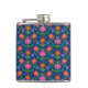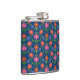 Um frasco da anca embrulhado em vinil, com um padrão colorido de flores e Bolinhas laranja e rosa em um fundo azul profundo que você pode mudar se quiser. (Preto, Branco, Amarelo Ouro e Turquesa são alternativos excelentes!) Parte da coleção Posh & Painterly 'Rangoli', este padrão bonito, marcado pode ser ajustado para ajustado qualquer um dos frascos da anca.