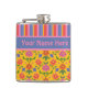 Um chic Hip Flask para personalizar, com um mix de padrões florais e listrados em Vermelho Brilho, Amarelo, Rosa e Azul. Parte da coleção Posh & Painterly 'Rangoli', este padrão pode ser ajustado para ajustado qualquer Flask.