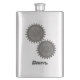 Frasco de aço inoxidável decorativo, com gráficos de duas engrenagens metálicas. Personalize o texto de olhar gravado na cinza, na parte inferior, para atender às suas necessidades. Ideia personalizada de presente de excelente.