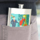 Querida, estou em casa! Este Casal de Cartoon da Idade do Espaço Retroativa terá inveja do casal de cartoon num frasco! O design apresenta um fundo turquesa com tijolos lacrimogêneos e uma lareira de cone verde-oliva. Na frente e no centro, há um distinto empresário martini a nadar num terno azul e gravata laranja. Ao seu lado, a sua loira bomba de uma esposa troféu está a vestir um vestido vermelho de bruxa e a segurar uma bandeja de martinis. Va-va-va-voom!