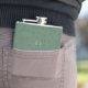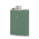 Frasco bonito com gráficos de uma aparência de couro verde de avestruz. Personalize o monograma de três letras, na frente para atender às suas necessidades. Ideia de presente de excelente para qualquer cara e especialmente excelente como presente de festa de casamento para padrinhos de casamento.