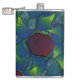Desenhos do que se parece com pétalas ou folhas com algumas dispostas ao redor de um hexágono de uma forma que se assemelha a uma flor, porém, esse desenho passou por alguns efeitos de edição que escureceram algumas partes e simularam entalhes.