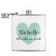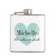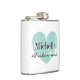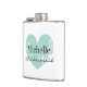 Frasco de cor azul-turquesa personalizado para a madrinha. Tipografia elegante com símbolo de amor meteorológico. Boa ideia de presente para o casamento das mulheres durante a noite de saída ou festa de solteira. Personalize-o com um nome ou com uma sigla monográfica. Álcool / Bebendo presente. Faça um para noiva, damas de honra, madrinha de casamento etc.