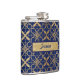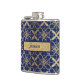 Você está pronto para qualquer ocasião com este elegante frasco de bebida inspirado no Marrocos em azul e dourado. Com uma etiqueta com nome reluzente em dourado que você pode personalizar completamente, este é um ótimo presente para aniversários, Dia das Mães ou Formaturas (somente adultos), Todos podemos brindar a isso! Este também é um presente elegante para dar à Noiva, Damas de honra ou impressionar a Mãe da Noiva. Todo o trabalho com brilho é apenas obra de arte. POR FAVOR, NOTE: São gráficos impressos planos - sem lantejoulas, joias ou partes salientes reais. Você vai achar esta obra de arte impressionante!