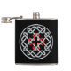Balão de licor com um design de nó celta com uma cruz quadrada vermelha no centro.