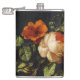 Vintage Ainda com Rosas de Elias van den Broeck em Black. Este velho óleo de obra-prima na pintura de canvas mostra rosas vermelhas uma borboleta e um caracol.