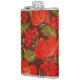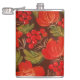 Uma pintura no estilo Petrykivka apresenta flores e frutos vermelhos vibrantes, representados com padrões intrincados e pinceladas delicadas. As flores são grandes e simétricas, cercadas por elementos florais menores e folhas ornamentais. As bagas, prováveis aglomerações de viburno, são destacadas com detalhes refinados, dando-lhes uma aparência semelhante à vida, mas decorativa. A composição é organizada de forma tradicional ucraniana, apresentando contrastes brilhantes e um equilíbrio harmonioso de cores em fundo branco ou claro.