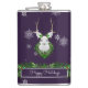 Aproveite as suas bebidas alcoólicas favoritas neste feriado com uma Rena Roxa, Frasco Vinil Molhado. Design de fenda apresenta uma rena festiva vestindo uma coroa de Natal enfeitada com bagas ocas e flocos de neve caindo e uma caixa de cartões de natal decorada com terra natalícia. Itens adicionais de presentes e feriados disponíveis com este design também.