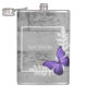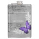 Aproveite as suas bebidas alcoólicas favoritas a qualquer momento com um frasco de Vinilo Russo de Borboleta Púrpura. Design de fenda apresenta uma borboleta vibrante que repousa sobre uma folhagem delicada com um espaço para adicionar o seu nome contra um fundo de madeira rústico. Itens de presentes adicionais disponíveis com este design também.