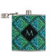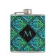 Um frasco monograma super legal com um nó celta azul-esverdeado design de azulejo de diamante repetido. Dar um presente personalizado único, ou tê-lo para si mesmo, você merece!