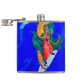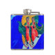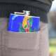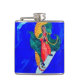 freira de hábito vermelho e capa de capuz verde surfando uma onda azul