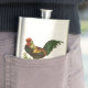 Desenho de galo vibrante com plumagem verde e vermelha. Vintage.