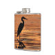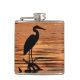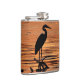 Esta garrafa das belas artes apresenta uma garça-real de grande azul (herodias do ardea) na silhueta, pescando nas águas rasas do lago Cayuga em Ithaca, NY que é um dos lagos finger do norte do estado de New York. Um por do sol bonito alaranjado, amarelo e do ouro colore as ondas e as ondinhas em um teste padrão abstrato.