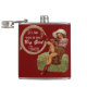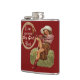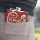 Vintage cowgirl ocidental sentada num fardo de feno a pôr as botas. "É hora de colocar sua botas de menina" dentro de uma bolha de teste de lasso. Cantil