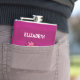 Um frasco personalizado com uma ilustração fofinha de zombie com cabelo rosa quente e pele verde-morta. Vestir o punk rock temido. Seus braços se estenderam em busca de cérebros. Colocado sobre um fundo de estilo magenta esmaecido com faixas desbotadas.