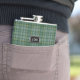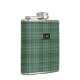 Garrafa à moda do bebendo com o teste padrão clássico branco, amarelo, e verde tradicional da xadrez de tartan de Currie do clã. Personalize o monograma de três letras, no metal que olha a chapa, para serir suas necessidades. Grande ideia do presente para alguma cara e especialmente excelente como um presente da festa de casamento para padrinhos de casamento.