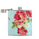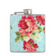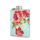 Uma casa de campo bonita do vintage do chique vermelha & os rosas alaranjados de p ajustados em um fundo do azul de turquesa florescem a garrafa envolvida do teste padrão vinil feminino feminino floral.