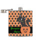 Este frasco apresenta um gatinho preto numa abóbora. Excelente para o outono ou Halloween. O design de fundo é um padrão de estilo preto, laranja e branco. A banda preta grossa tem texto que pode ser personalizado.