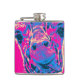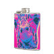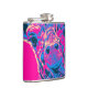 Uma pose engraçada de uma girafa fofinha - destacando sua língua! Cores néon alegres e engraçadas de rosa e azul. Sessenta e poucos anos retro estilo pop.