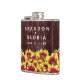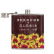 Adicione um toque de charme de vintagem ao seu dia especial com este frasco de quadril de matrimônio floral, que apresenta uma medalha florescente de mini girassóis vívidos, de dois tons, colocada em uma cerca de tempo. Personalize com os nomes dos recém-casados e a data do casamento. Um excelente para os temas de casamento no outono e no rusticário! Design © W.H. Sim. Mais informações em zazzle.com/expressionsoccasions