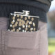 Acessórios de moda de bugigangas preto e branco com brilho de champanhe dourado confetti.