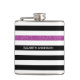 Personalize este frasco de listras preto e branco, de forma horizontal, largo e largo, molhado em vinil, com uma risca púrpura de brilho, acrescentando o nome de qualquer rapariga. Este padrão gráfico de tendência é perfeito para a moda chic. Imagem impressa plana, NÃO brilho real.
