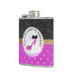 Balão de bebendo de golfe feminino feito em um olhar de sequência preta e um rosa com bolinhas douradas, por baixo, com banda dourada, entre os fundos superior e inferior. Uma bola de golfe, na frente, é decorada com um estilete cor-de-rosa a salto alto. O texto preto diz: "Posso dar em salto?" Personalize o texto e o nome para atender às suas necessidades. Ideia divertida de presente.