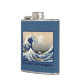 "A Grande Onda ao largo de Kanagawa", também conhecida como "Debaixo da Onda ao largo de Kanagawa", é uma cativante gravura em xilogravura do renomado artista japonês Katsushika Hokusai. Criada por volta de 1831, faz parte de uma série intitulada "Trinta e seis vistas do Monte Fuji". A obra de arte retrata uma cena de imensa força e beleza contrastante. Uma onda colossal, com crista espumante e enrolada para dentro, ameaça engolir três pequenos barcos em um mar agitado. Ao fundo, o Monte Fuji, um símbolo icônico do Japão, permanece calmo e majestoso, ofuscado pela imensidão da onda. --- A maestria de Hokusai na composição é evidente na maneira como ele usa a perspectiva. A onda toma o centro do palco, com sua forma dinâmica preenchendo o primeiro plano. As cristas