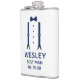 Este frasco de 8 oz é ótimo para o padrinho. Se toda a festa de casamento estiver usando ternos, este design com suspensórios e gravata azul será perfeito. Casual, mas formal. Será ótimo para um fim de semana de despedida de solteiro ou festa de solteiro. Um presente divertido para um momento inesquecível. Compre um para todos do cortejo - eles vão adorar! O título pode ser alterado para noivo, acompanhante do noivo, porteiro, etc.