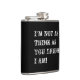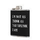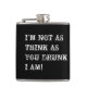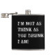 A cor do fundo é preta, e o texto em uma pia batismal branca extravagante diz, "eu não sou como penso, enquanto você bebado mim é!" Um humor bêbedo pequeno para sua garrafa de bolso!
